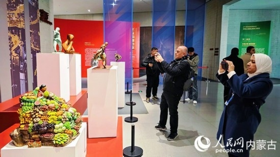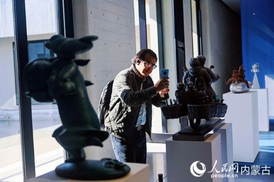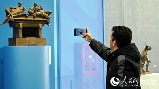 外媒記者參觀呼和浩特雕塑藝術館。人民網(wǎng)記者 張雪冬攝