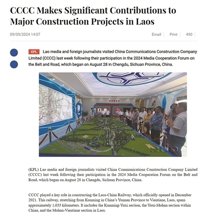 日前,2024“一帶一路”媒體合作論壇框架下的中老媒體高質量共建“一帶一路”聯(lián)合采訪在四川舉行。人民日報社、中國新聞社、老撾《人民報》、老撾國家通訊社、老撾《巴特寮報》等中老10余家媒體代表走訪了成都、德陽、廣元等地,感受中國以高質量發(fā)展全面推進中國式現(xiàn)代化的實踐。聯(lián)合采訪成果以圖文并茂的形式在兩國媒體落地,凝聚了中老各界推進高質量共建“一帶一路”的共識,進一步促進了兩國民心相通。