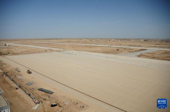 這是4月8日在伊拉克濟(jì)加爾省拍攝的由中國(guó)建筑集團(tuán)有限公司承建的納西里耶國(guó)際機(jī)場(chǎng)項(xiàng)目施工現(xiàn)場(chǎng)。新華社記者 段敏夫 攝
