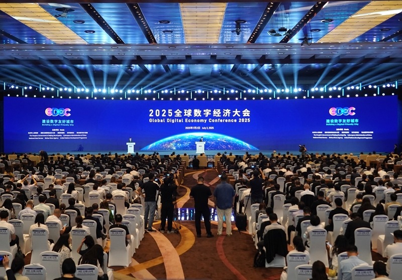 這是7月2日拍攝的2025全球數(shù)字經(jīng)濟(jì)大會(huì)開幕式現(xiàn)場(chǎng)。