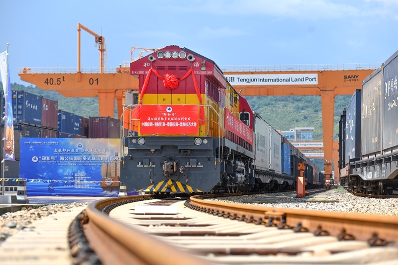 當(dāng)日下午,“鄭和號”海公鐵國際多式聯(lián)運班列首發(fā)列車從云南省昆明市騰俊國際陸港公鐵聯(lián)運中心發(fā)車,貨物經(jīng)中老鐵路抵達(dá)老撾萬象后再分成三條線路,分別運至泰國、新加坡和孟加拉國,開辟了中國昆明至孟加拉國吉大港的全新路線。