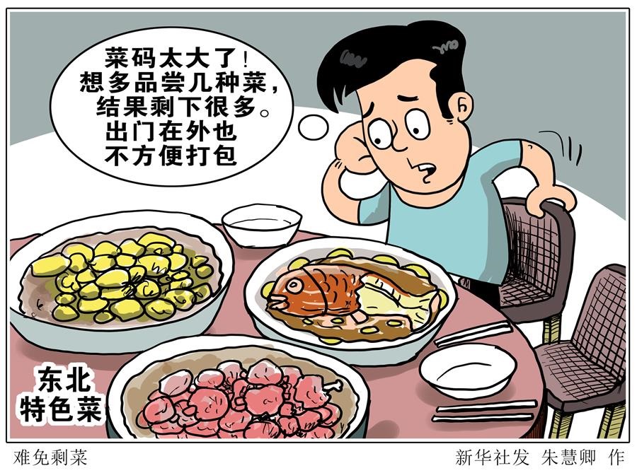 大鐵鍋裝小雞燉蘑菇、豬肉燉粉條,臉盆大小的鋁盆盛裝堆積如小山的主食……在東北,有很多以“大盤菜”“大鍋燉”為特色的餐館。“新華視點(diǎn)”記者在吉林、黑龍江、遼寧三省走訪發(fā)現(xiàn),以“量大實(shí)惠”為招牌的東北菜在不少地方很受歡迎,但也存在剩菜多、浪費(fèi)多的現(xiàn)象。