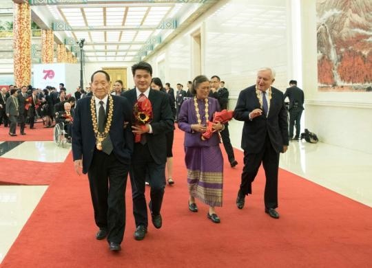 2019年9月29日,國(guó)家勛章和國(guó)家榮譽(yù)稱號(hào)獲得者在儀式后步出人民大會(huì)堂金色大廳。經(jīng)中共中央批準(zhǔn),中華人民共和國(guó)國(guó)家勛章和國(guó)家榮譽(yù)稱號(hào)頒授儀式于9月29日上午10時(shí)在北京人民大會(huì)堂隆重舉行。新華社記者王曄攝