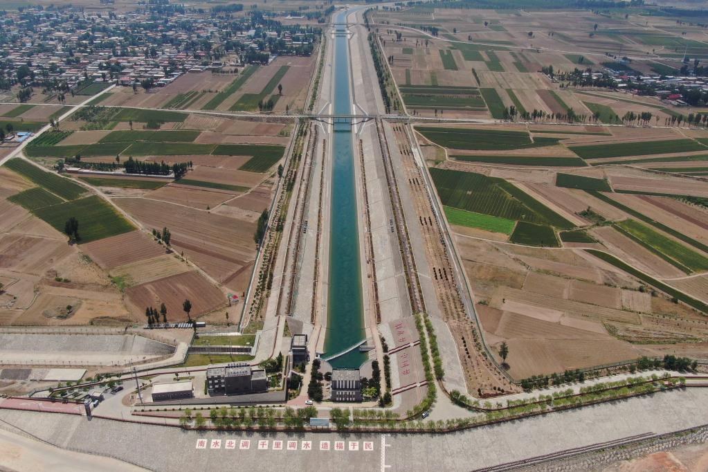 圖為南水北調中線位于京冀交界處的明渠和北拒馬河暗渠節(jié)制閘,北拒馬河暗渠節(jié)制閘是進入北京的南水從明渠轉入暗涵的交接點。