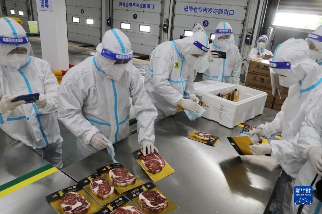 記者在現(xiàn)場(chǎng)看到,當(dāng)運(yùn)輸進(jìn)口冷鏈?zhǔn)称氛蛊返能囕v到達(dá)后,工作人員馬上對(duì)司機(jī)進(jìn)行健康碼核驗(yàn)和體溫檢測(cè),并對(duì)車輛進(jìn)行消毒。裝卸過程中,司機(jī)實(shí)行“非必要不下車”。貨物入庫(kù)時(shí),在完成外包裝消毒后,工作人員將展品拆除外包裝,對(duì)內(nèi)里的小包裝進(jìn)行消毒、核酸檢測(cè),再重新裝箱、貼標(biāo)簽、放入暫存庫(kù),之后再轉(zhuǎn)入合格儲(chǔ)存庫(kù)。