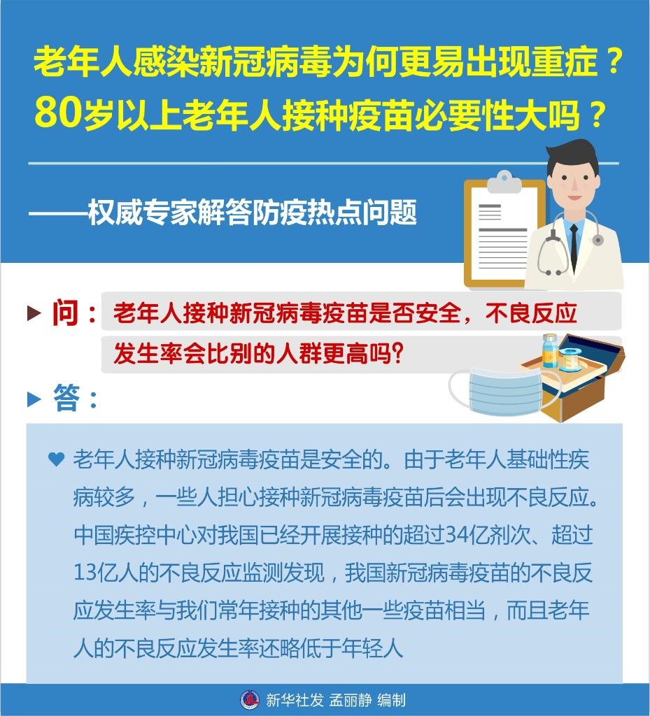 3.問(wèn):老年人接種新冠病毒疫苗是否安全,不良反應(yīng)發(fā)生率會(huì)比別的人群更高嗎?