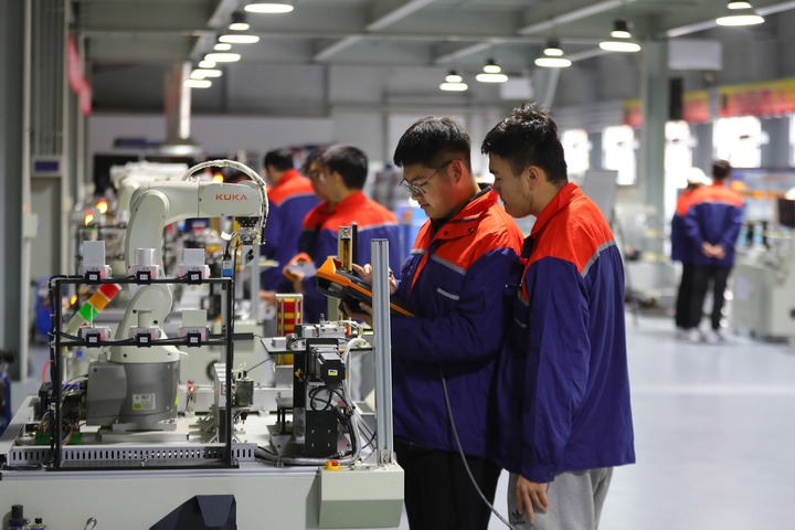 圖為11月2日,在沈陽工學院工業(yè)機器人實訓中心,機器人工程專業(yè)學生進行工業(yè)機器人基礎實踐應用操作。近年來,沈陽工學院全力建設工業(yè)機器人實訓中心,將車間搬進校園。針對企業(yè)需求,學校開展機械加工等實操課程,有力提升學生就業(yè)水平。新華社記者 楊青 攝