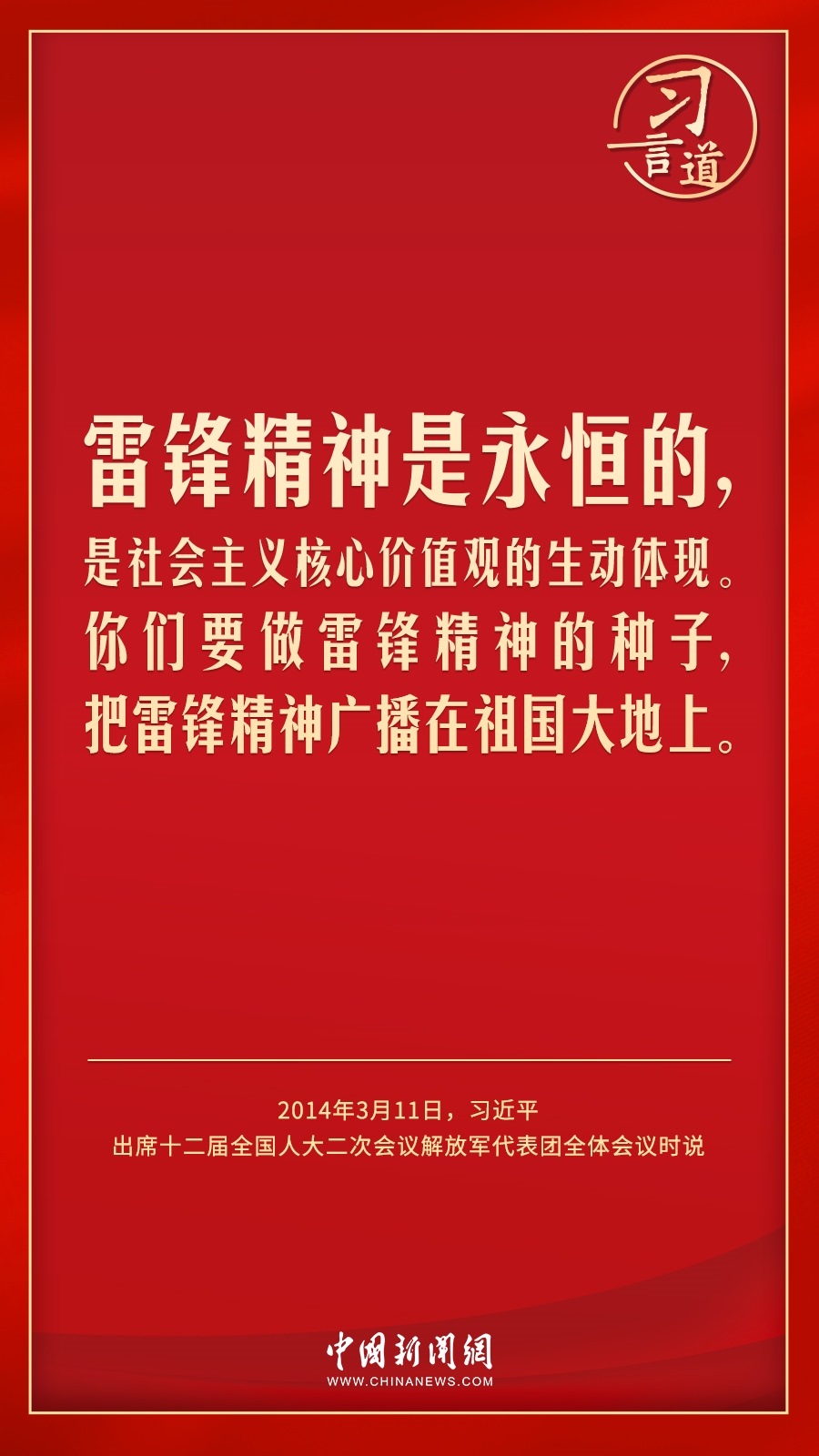 今年是毛澤東等老一輩革命家為雷鋒同志題詞60周年。黨的十八大以來,習(xí)近平總書記就學(xué)習(xí)弘揚(yáng)雷鋒精神多次作出重要指示,他強(qiáng)調(diào),無(wú)論時(shí)代如何變遷,雷鋒精神永不過時(shí)。