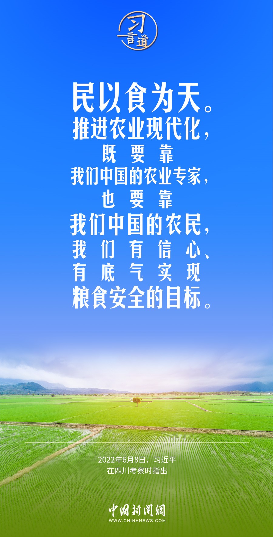 沒有農(nóng)業(yè)現(xiàn)代化,沒有農(nóng)村繁榮富強(qiáng),沒有農(nóng)民安居樂業(yè),國家現(xiàn)代化是不完整、不全面、不牢固的。習(xí)近平總書記高度重視“三農(nóng)”工作,多次就推進(jìn)農(nóng)業(yè)現(xiàn)代化作出重要論述。