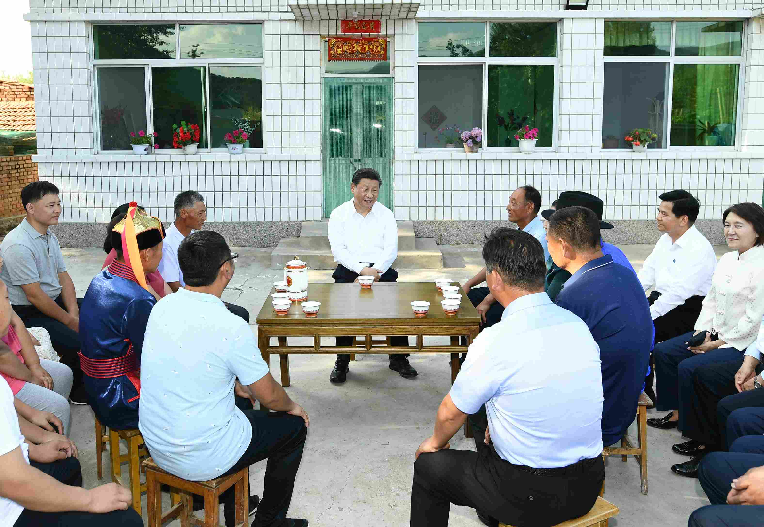 2019年7月15日至16日,中共中央總書記、國家主席、中央軍委主席習(xí)近平在內(nèi)蒙古考察并指導(dǎo)開展“不忘初心、牢記使命”主題教育。這是15日下午,習(xí)近平在赤峰市喀喇沁旗河南街道馬鞍山村村民張國利家,同基層干部群眾代表座談交流。 新華社記者 謝環(huán)馳/攝