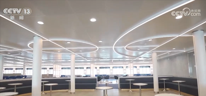 中國船舶集團(tuán)廣船國際副總經(jīng)理 周旭輝:這個(gè)船有7000平方米的公共活動區(qū)域,所有的裝修材料100%國產(chǎn)化,對本土的經(jīng)濟(jì)配套有很大的拉動作用。