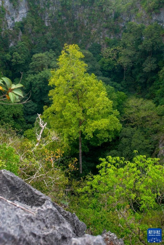 3月15日拍攝的位于巖溶峰叢洼地中的望天樹。