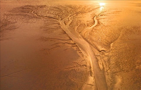 江蘇南通,啟東市江海瀾灣旅游度假區(qū)海域淺灘上出現(xiàn)“潮汐樹”景觀。