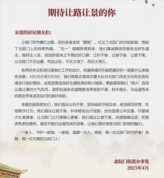 ·西安一街道辦回應(yīng)“倡議五一期間陜A讓路讓景”:想讓外地游客有更好體驗,并非強(qiáng)制播報文章。