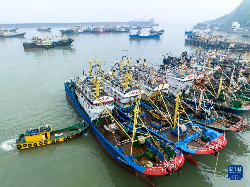 當(dāng)日,在浙江省溫嶺市石塘鎮(zhèn),漁船陸續(xù)進(jìn)港??浚蛹磳⒌絹淼男轁O期。新華社發(fā)(徐偉杰攝)