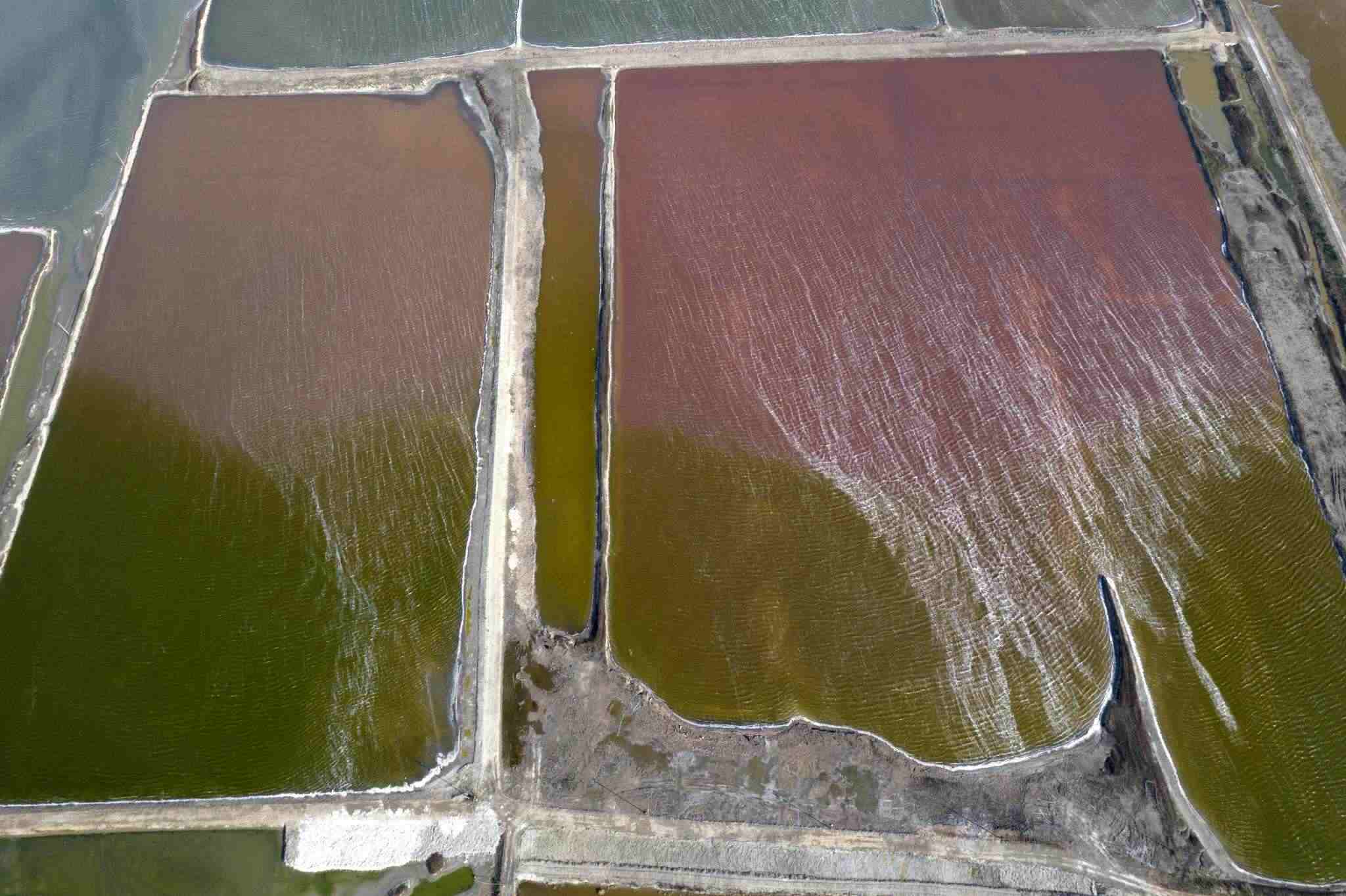 山西運城:七彩鹽湖現(xiàn)風(fēng)吹波浪景觀