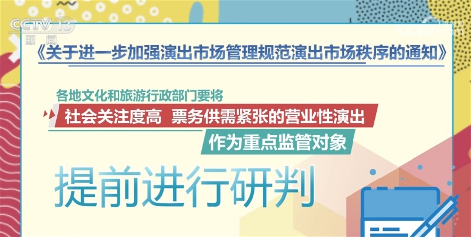通知指出,各地文化和旅游行政部門要依法做好演出活動(dòng)的審批工作,將屬于營(yíng)業(yè)性演出范圍的農(nóng)村集鎮(zhèn)演出、流動(dòng)性演出納入審批管理,嚴(yán)格審核演出舉辦單位的資質(zhì)文件,統(tǒng)一審批要求,做好內(nèi)容監(jiān)管。對(duì)不符合法定審批要求的,堅(jiān)決不予批準(zhǔn)。文化和旅游行政部門要定期對(duì)演出場(chǎng)所進(jìn)行檢查,督促演出場(chǎng)所定期開展設(shè)施設(shè)備檢查,落實(shí)安全生產(chǎn)責(zé)任制。督促演出場(chǎng)所建立完善現(xiàn)場(chǎng)巡查制度,指定專人負(fù)責(zé)演出活動(dòng)的巡查,做好現(xiàn)場(chǎng)觀眾管理,堅(jiān)決防止擁擠、踩踏等事故發(fā)生,確保演出現(xiàn)場(chǎng)安全。各地文化和旅游行政部門要將社會(huì)關(guān)注度高、票務(wù)供需緊張的營(yíng)業(yè)性演出作為重點(diǎn)監(jiān)管對(duì)象,提前進(jìn)行研判。督促演出舉辦單位、演出票務(wù)經(jīng)營(yíng)單位面向市場(chǎng)公開銷售的營(yíng)業(yè)性演出門票數(shù)量,不得低于核準(zhǔn)觀眾數(shù)量的70%。對(duì)在票務(wù)經(jīng)營(yíng)中發(fā)現(xiàn)有炒票問題或可能造成不良影響的,應(yīng)當(dāng)及時(shí)約談演出舉辦單位和演出票務(wù)經(jīng)營(yíng)單位,督促整改。要聯(lián)合屬地公安、市場(chǎng)監(jiān)管等部門,依法打擊“黃?!背雌?、虛假宣傳等違法違規(guī)行為,切實(shí)保障消費(fèi)者合法權(quán)益。
