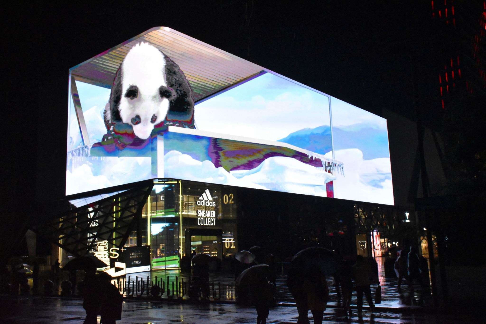 2023年4月24日,成都,太古里步行街的裸眼3D屏上,大熊貓萌態(tài)十足。視覺(jué)中國(guó)