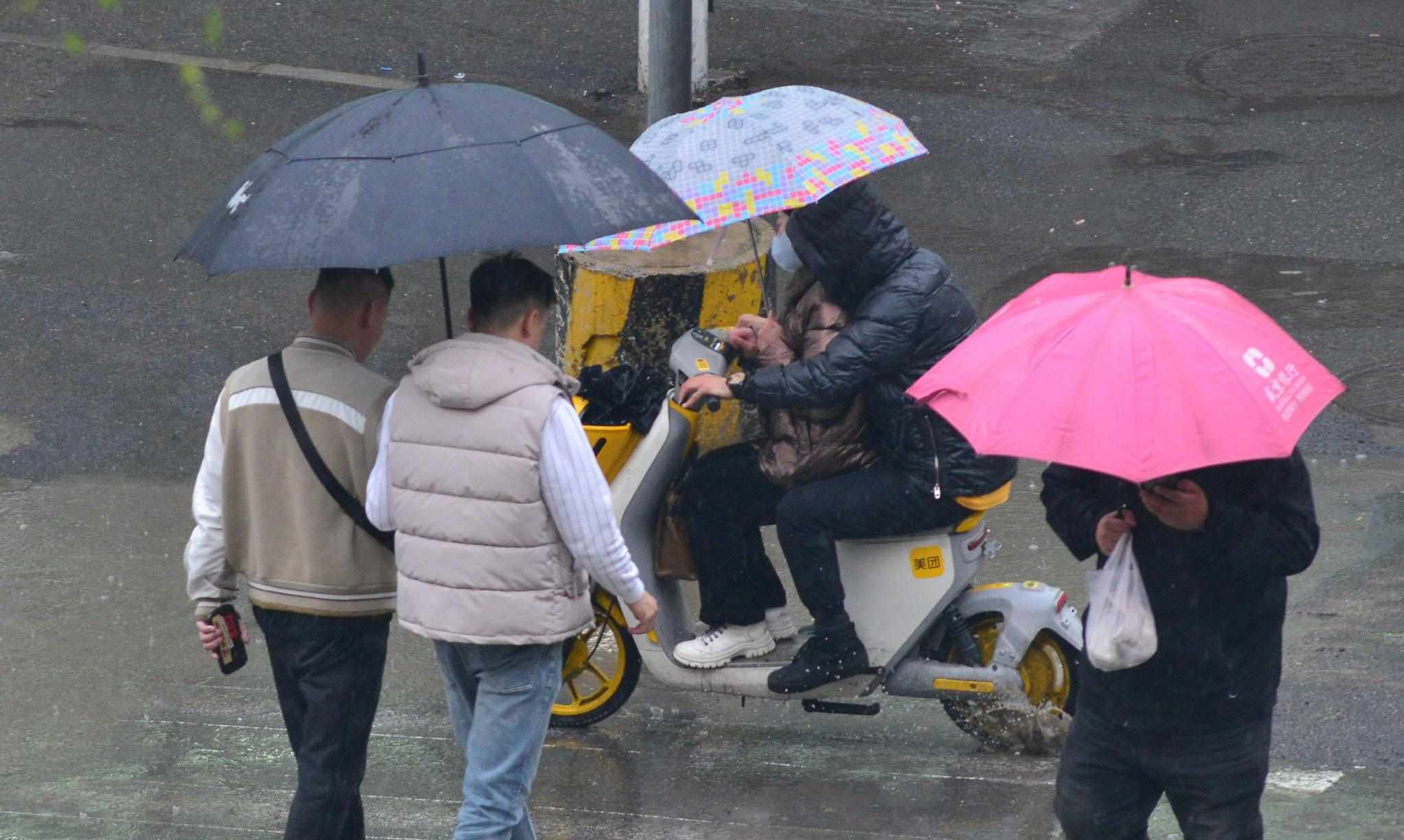2023年4月28日,沈陽,降雨降溫持續(xù)多日,市民著厚衣出行。視覺中國
