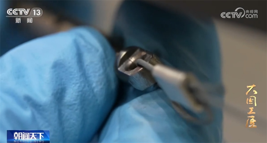 航天科技集團(tuán)八院空間飛行器總裝組組長(zhǎng) 曹毅:這個(gè)表針幾乎是不動(dòng)的,(記者:就是零誤差?)對(duì)。神舟號(hào)或者天宮號(hào),還有貨運(yùn)飛船的,還有涵蓋所有的其他衛(wèi)星的鉸鏈都是我們從這邊裝配調(diào)試發(fā)展出來(lái)的,百分之百成功。