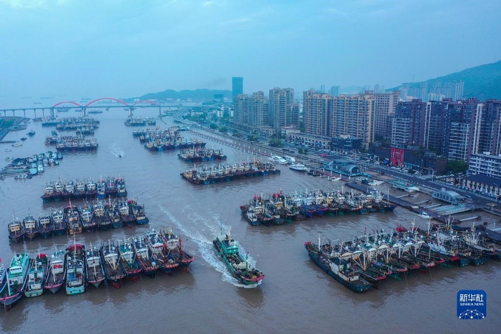 4月30日在浙江省舟山市普陀區(qū)沈家門漁港拍攝的回港停泊的漁船。 新華社發(fā)(邢守秒攝)