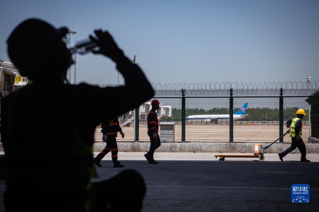 5月1日,工人在浙江省臺(tái)州市路橋機(jī)場(chǎng)改擴(kuò)建項(xiàng)目施工現(xiàn)場(chǎng)施工。