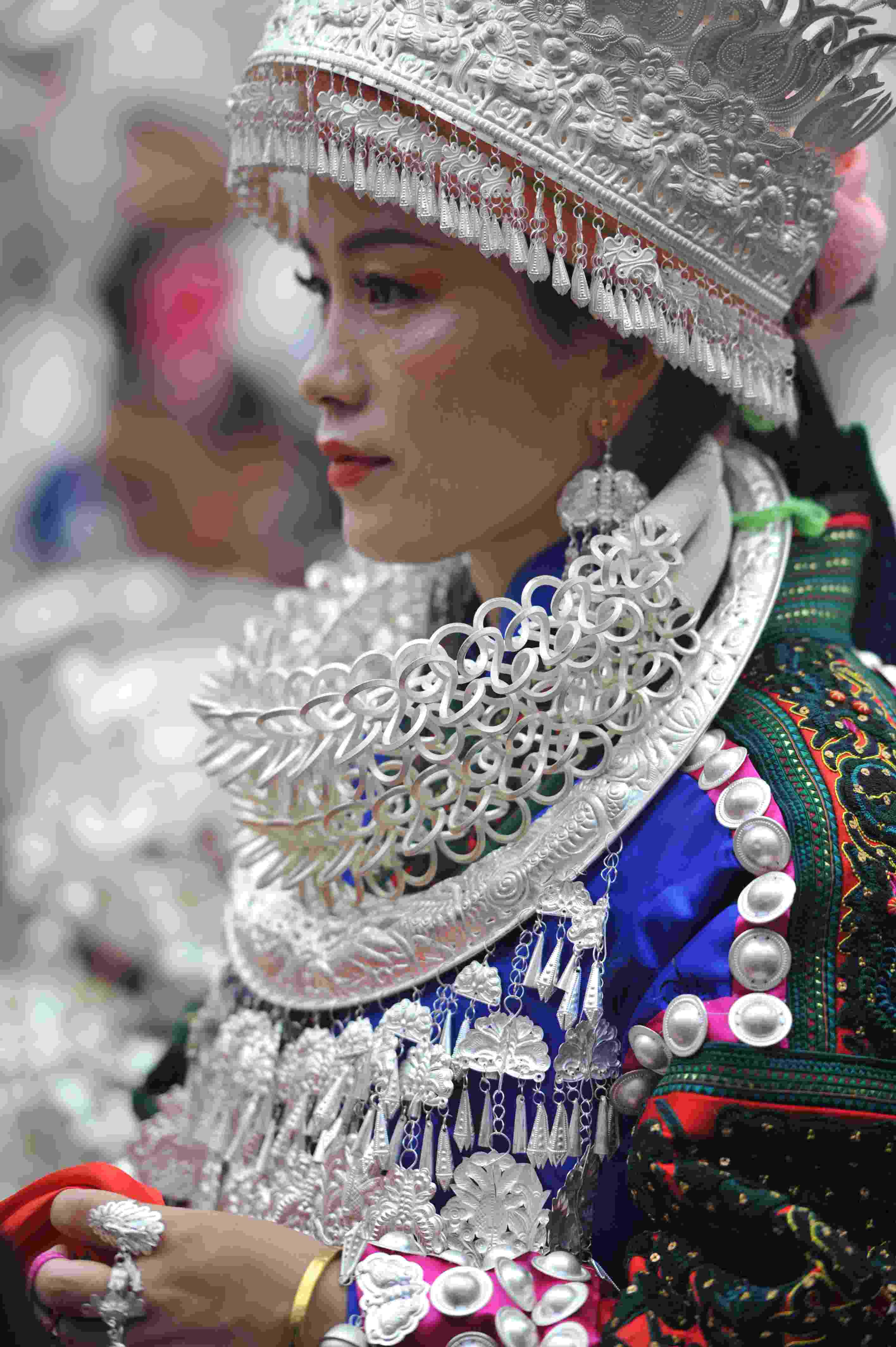 貴州省臺江縣苗族文化豐富多彩厚重,其服飾是苗族文化的重要載體,苗族女子服飾以靚麗的銀飾、精美的刺繡和獨特的審美文化內(nèi)涵而被稱為“穿在身上的史書”,成為識別苗族9大支系的重要標識,具有極高的藝術、觀賞和收藏價值。 (寧堅)