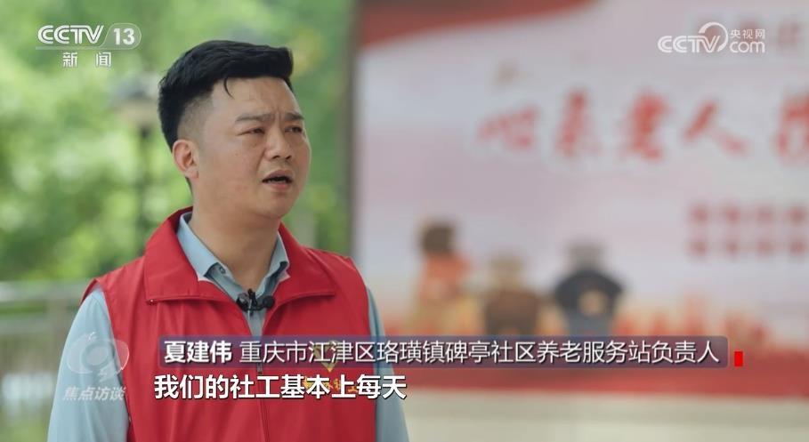 重慶市江津區(qū)珞璜鎮(zhèn)碑亭社區(qū)養(yǎng)老服務(wù)站負(fù)責(zé)人夏建偉:“一天下來(lái),滿滿當(dāng)當(dāng)?shù)?,我們的社工基本上每天都超過(guò)了兩萬(wàn)三千步的樣子。雖然說(shuō)很累,但是每一個(gè)社工都很愉快,都覺得在這個(gè)過(guò)程當(dāng)中找到了快樂(lè),也找到了成就感?!?/p>