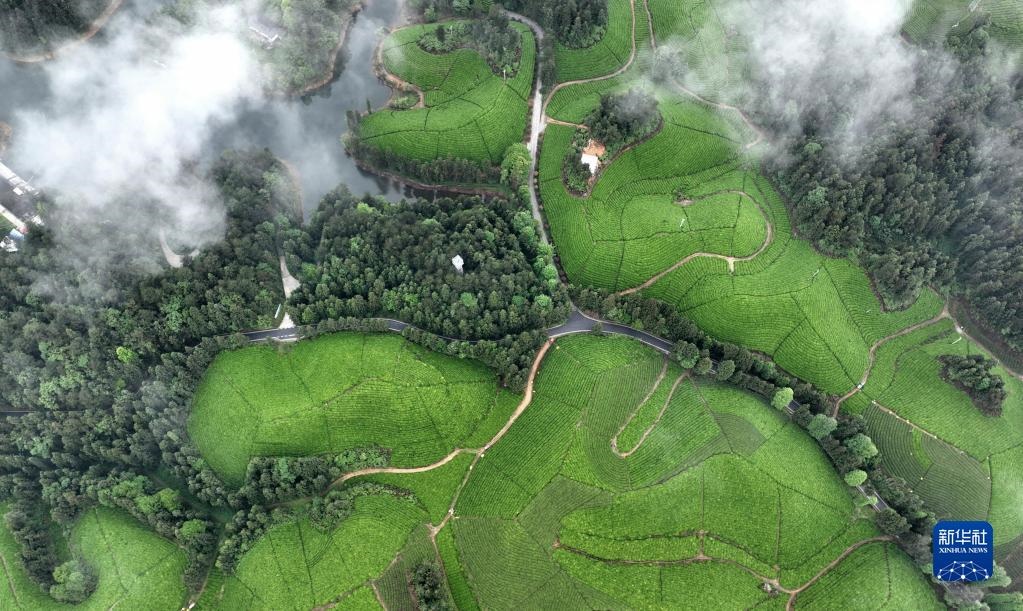這是5月7日拍攝的鶴峰縣走馬鎮(zhèn)楊柳池茶園(無人機照片)。   新華社發(fā)(楊順丕攝)