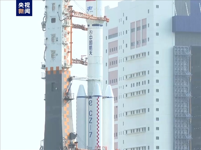 5月7日,在文昌航天發(fā)射場,天舟六號貨運飛船和長征七號遙七運載火箭組合體開始進(jìn)行垂直轉(zhuǎn)運。
