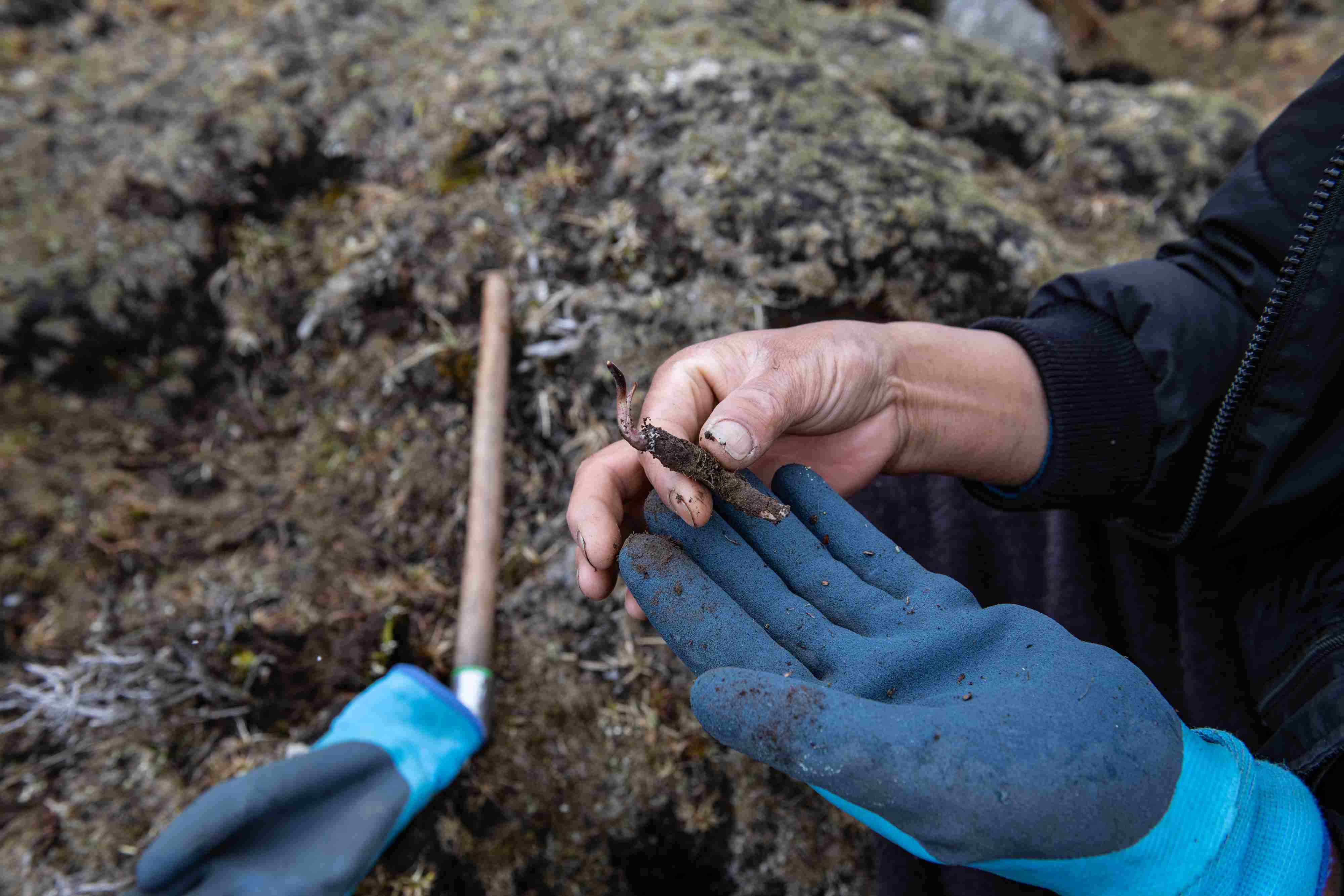 2023年5月7日,西藏山南,加查縣安繞鎮(zhèn)的村民在索囊溝采挖冬蟲夏草。4月下旬,西藏冬蟲夏草采挖季已開啟,加查縣是最早開始采挖冬蟲夏草的縣區(qū)之一。當(dāng)?shù)夭赏谡咣`行“生態(tài)采挖”,挖完冬蟲夏草后,覆蓋草皮,盡量減少對生態(tài)的破壞。 視覺中國