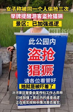 ·景區(qū)回應女子舉牌提醒公園盜搶猖獗:正在核實,已加強巡邏。
