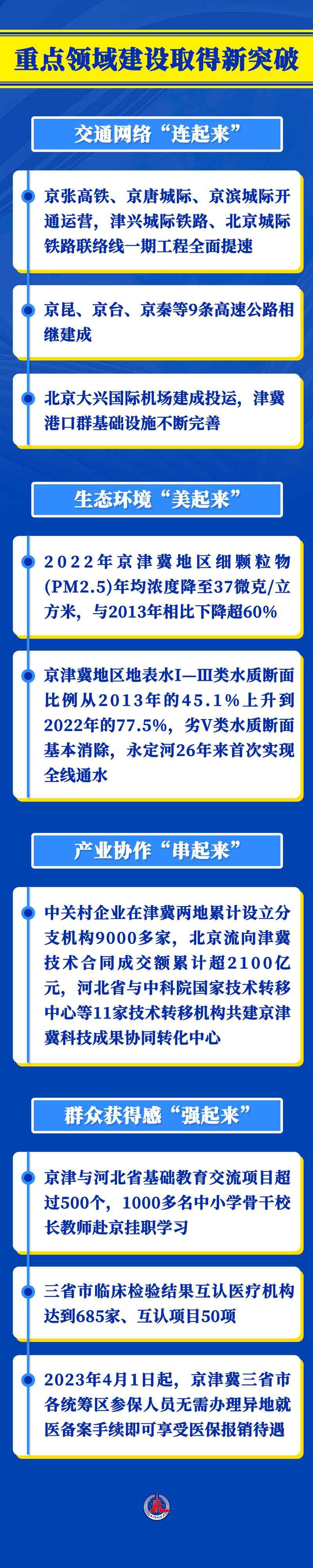京津冀協(xié)同發(fā)展是一個(gè)系統(tǒng)工程。9年多來,三地?cái)y手發(fā)力,重點(diǎn)區(qū)域協(xié)同發(fā)展步穩(wěn)蹄疾,交通、環(huán)境、產(chǎn)業(yè)、公共服務(wù)等重點(diǎn)領(lǐng)域建設(shè)不斷取得新突破。