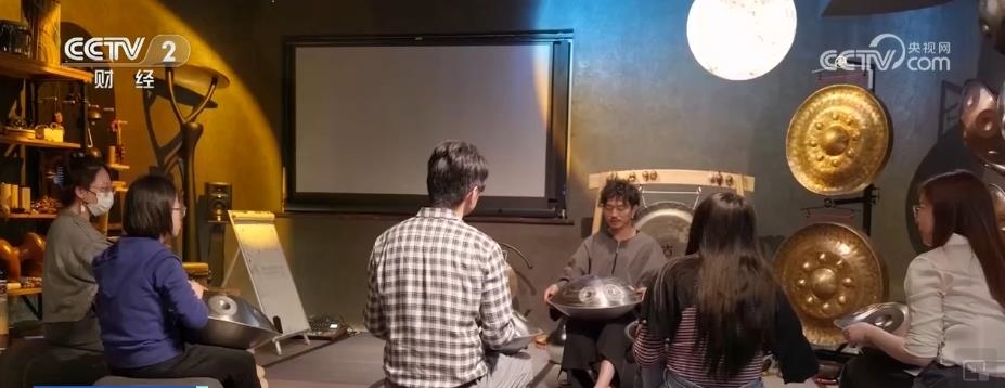 傳統(tǒng)小店被賦予了新場景的同時,一些新奇有趣的業(yè)態(tài)也找到了生存的土壤。晚上7點30分,在上海長寧區(qū)的一個寫字樓里,一場手碟培訓(xùn)課正在進行中。席地而坐的竹席、深灰色的墻面和月球燈營造出治愈沉靜的氣氛,手碟空靈的聲音不時響起。
