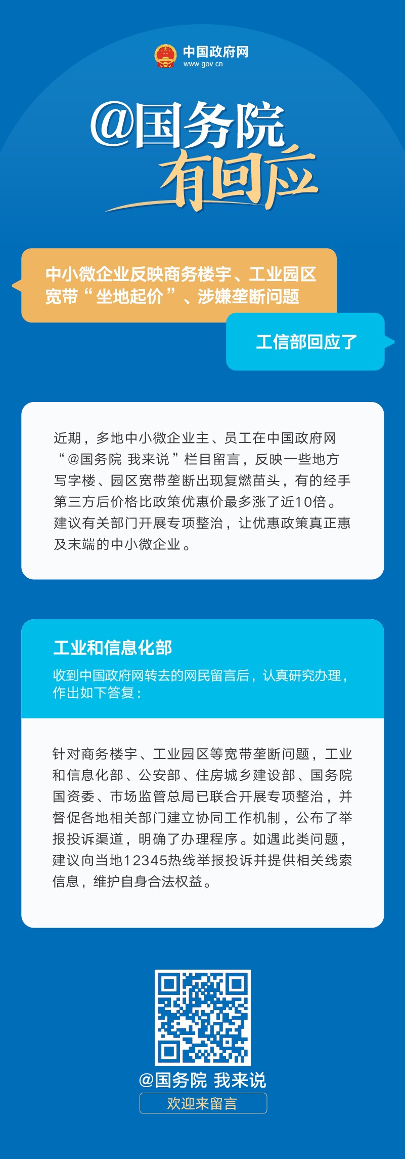 商務(wù)樓宇、工業(yè)園區(qū)寬帶坐地起價(jià)涉嫌壟斷,工信部將聯(lián)合整治 據(jù)中國(guó)政府網(wǎng)7月12日消息,工業(yè)和信息化部近日答復(fù)“商......