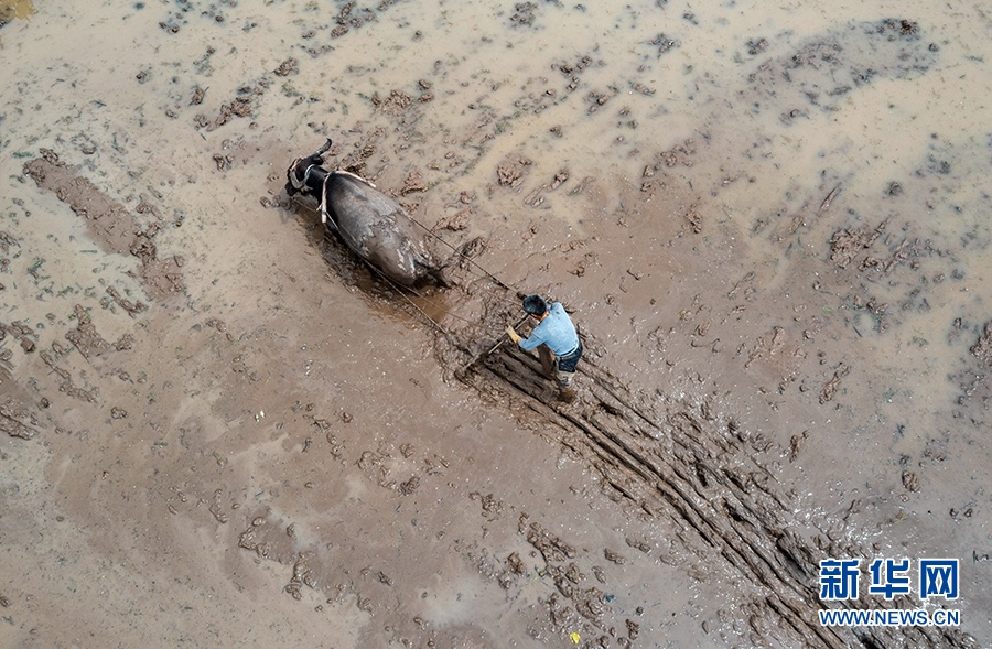 一場雨后,農(nóng)戶抓緊時(shí)間犁地。新華網(wǎng)發(fā)(朱云平 攝)