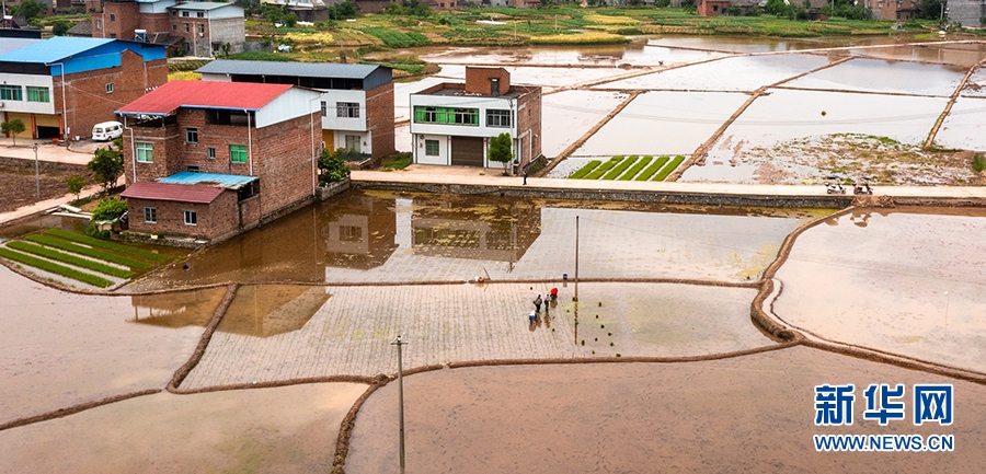 初夏時(shí)節(jié)的廟宇鎮(zhèn),農(nóng)田里水盈盈。新華網(wǎng)發(fā)(朱云平 攝)