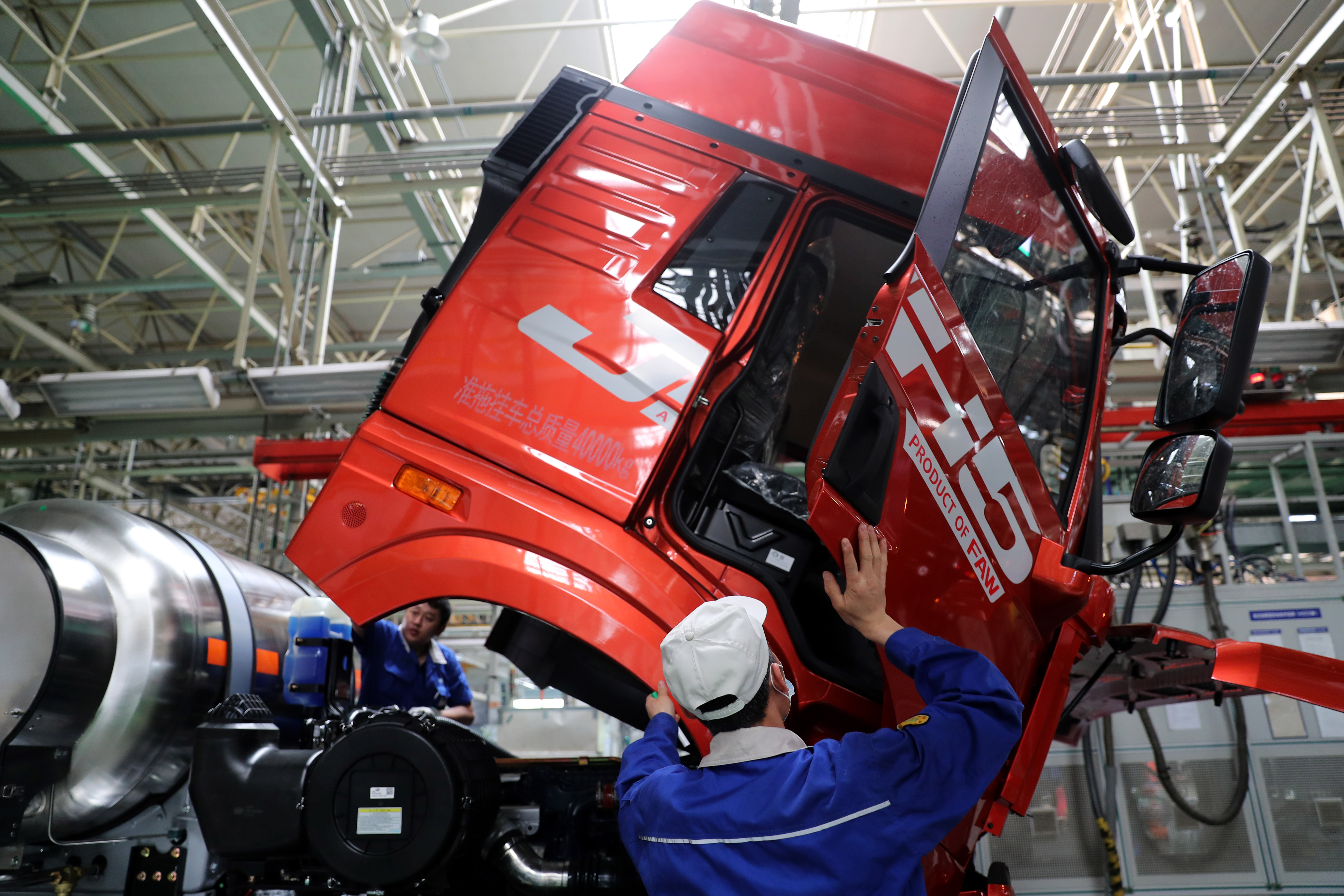 5月15日,在山東省青島市即墨區(qū)的青島汽車產(chǎn)業(yè)新城,汽車生產(chǎn)企業(yè)一片繁忙景象,工人們開足馬力趕訂單,滿足國內外市場需求。