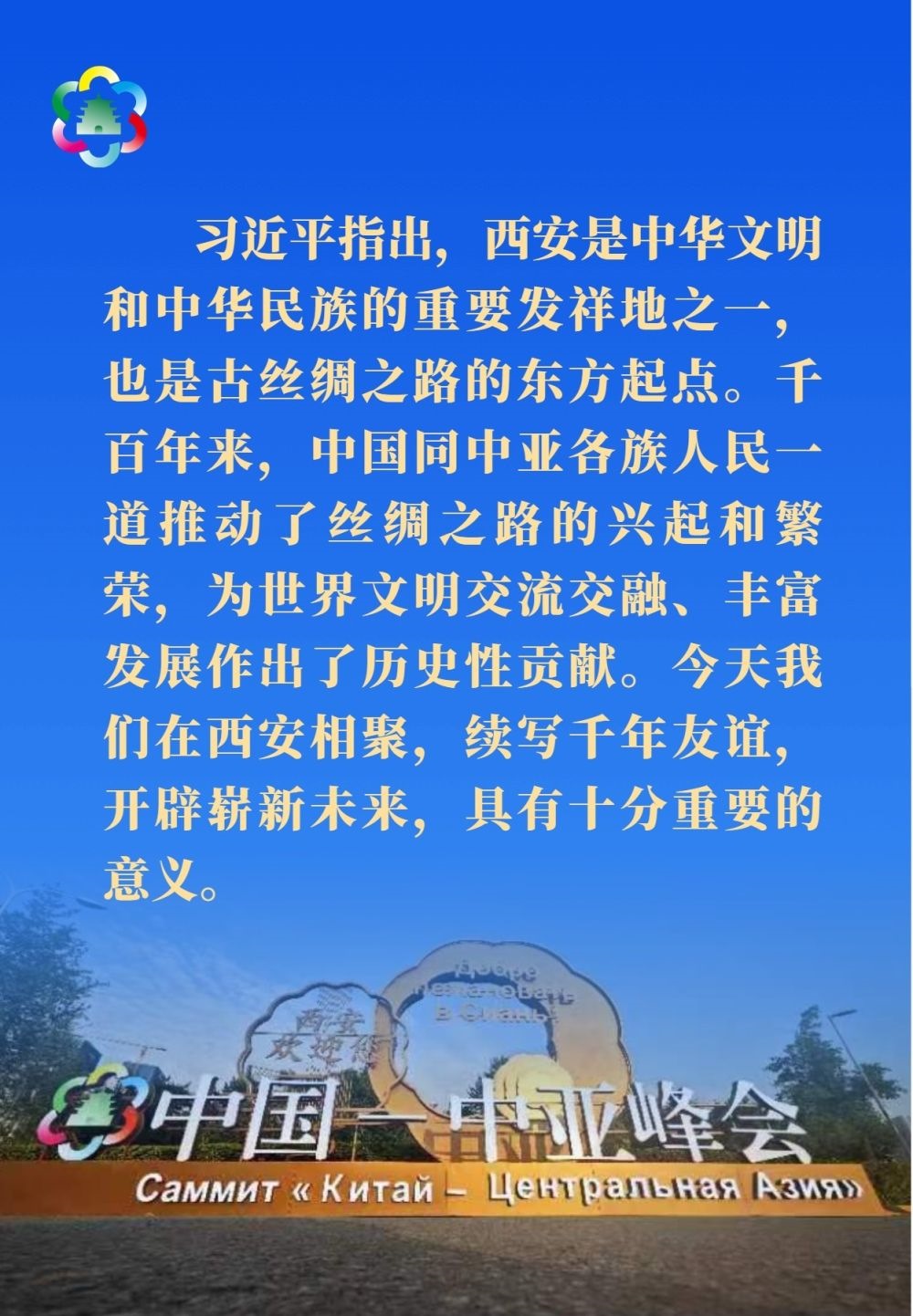 習(xí)近平發(fā)表題為《攜手建設(shè)守望相助、共同發(fā)展、普遍安全、世代友好的中國(guó)-中亞命運(yùn)共同體》的主旨講話。