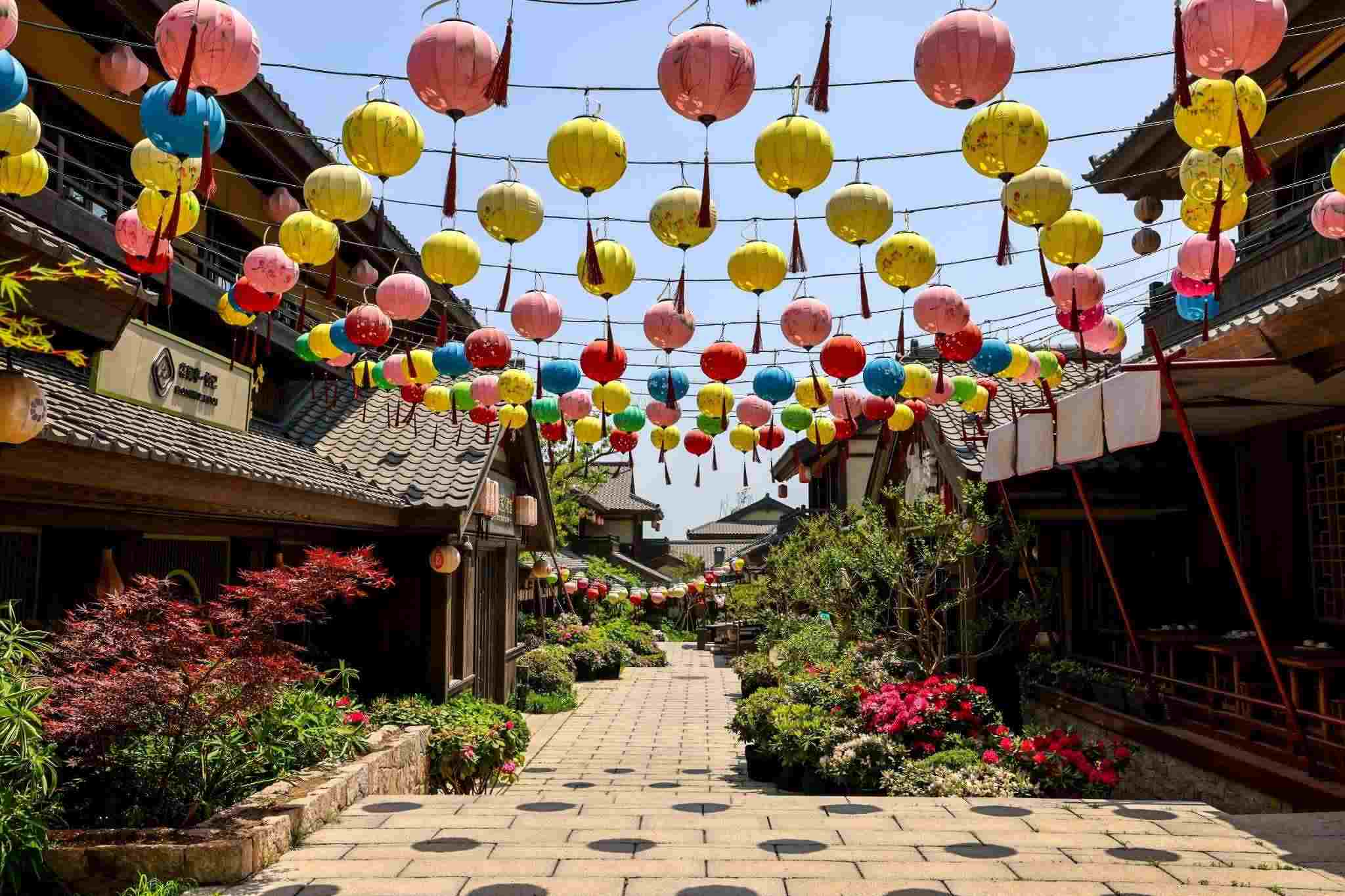 2023年5月19日,青島,西海岸新區(qū)藏馬鎮(zhèn),鑲嵌在藏馬山山麓的網(wǎng)紅“打卡地”阿朵花嶼美不勝收。漫步在這個唐風(fēng)古鎮(zhèn)中,繽紛花色點(diǎn)綴在建筑之間,好似畫中景色,讓人流連沉醉。視覺中國