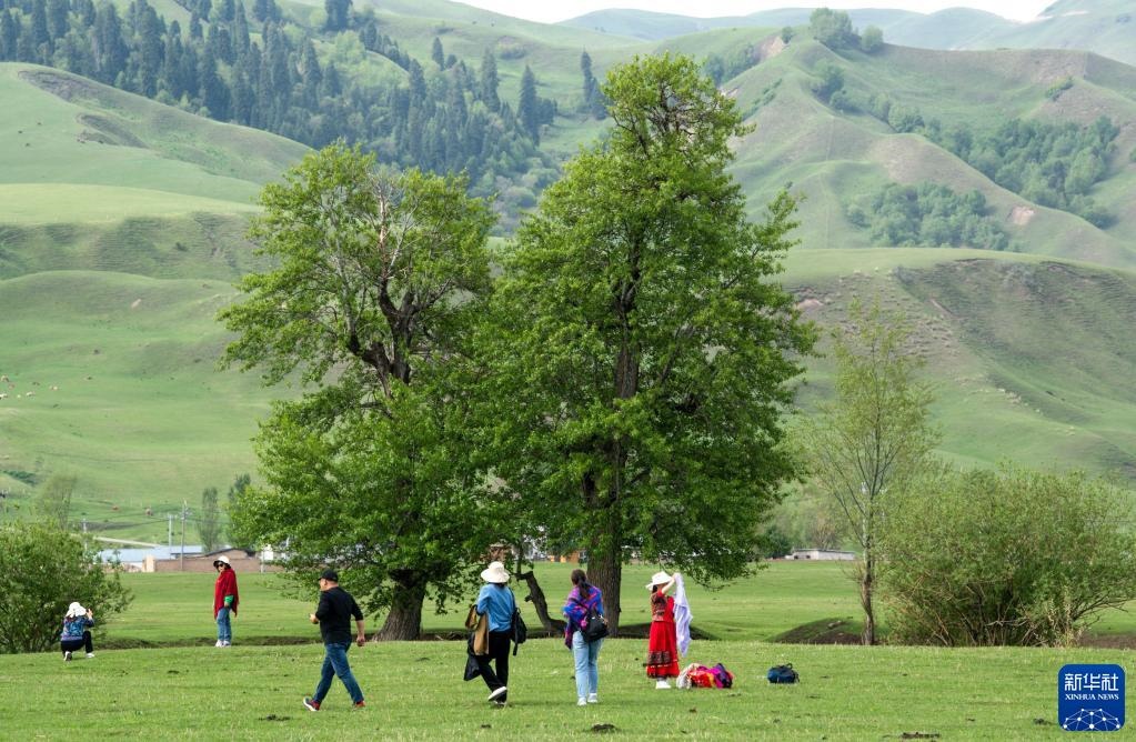 5月20日,游客在位于新疆新源縣的那拉提旅游風(fēng)景區(qū)觀光。