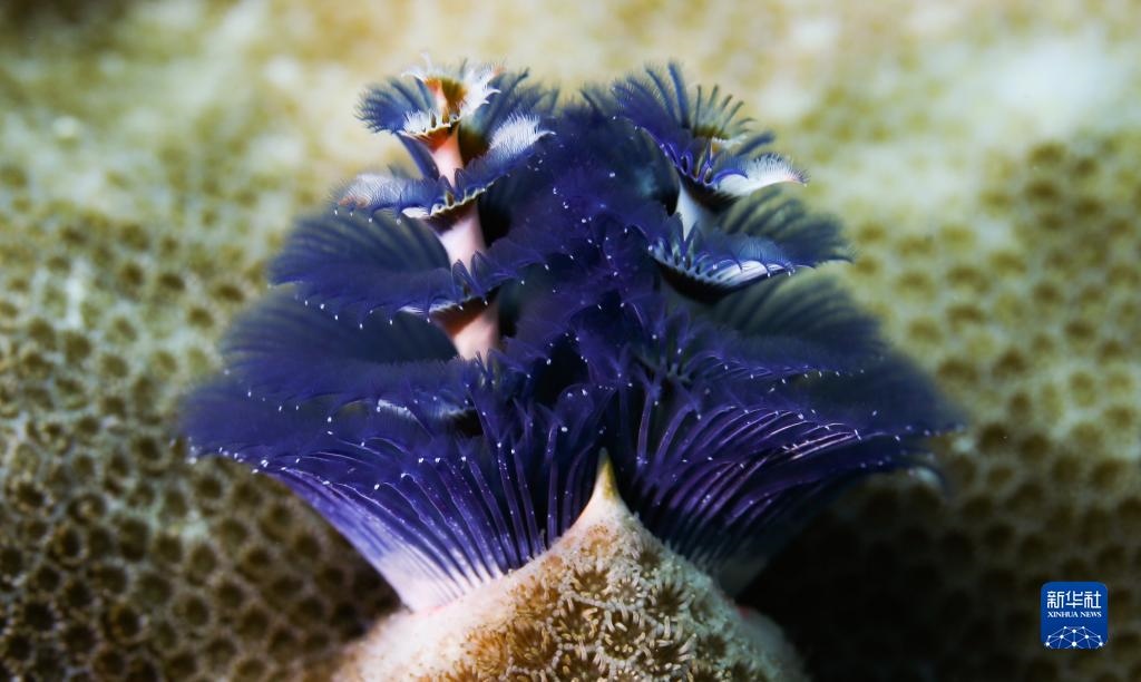這是在蜈支洲島海域海洋牧場(chǎng)拍攝的圣誕樹管蟲(2021年5月23日攝)。