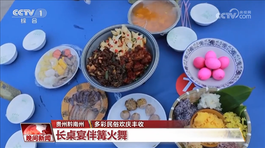 貴州黔南州:長桌宴伴篝火舞