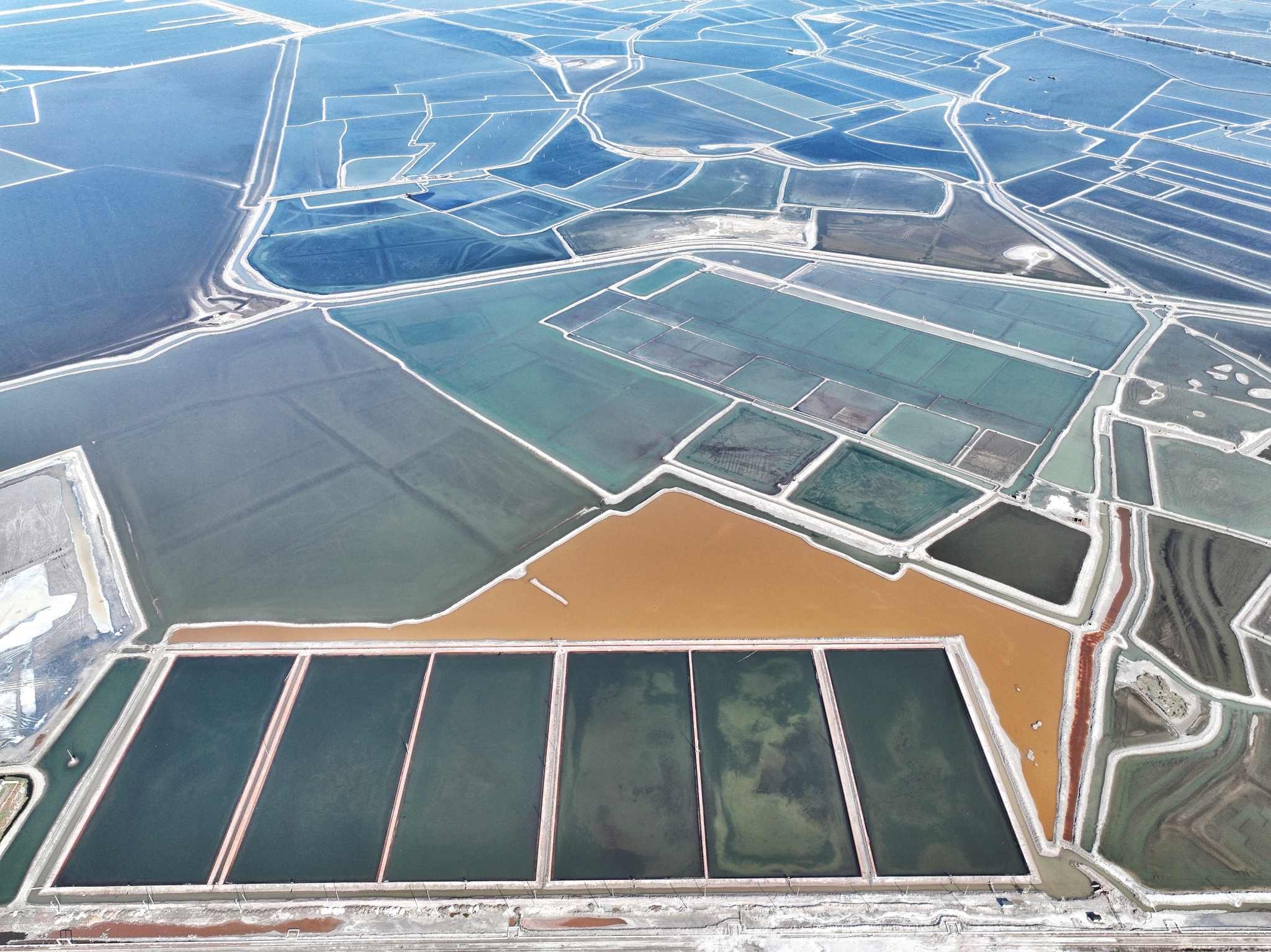 2023年5月22日,天津,位于渤海之濱的長蘆漢沽鹽場色塊分明,俯瞰如大地調(diào)色盤。視覺中國