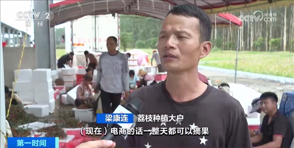 記者看到,許多果農(nóng)滿載著剛剛從枝頭采摘下來的新鮮荔枝來到這里,和采購商進(jìn)行直接交付。荔枝打包完成后,再經(jīng)由冷鏈車銷往各地。