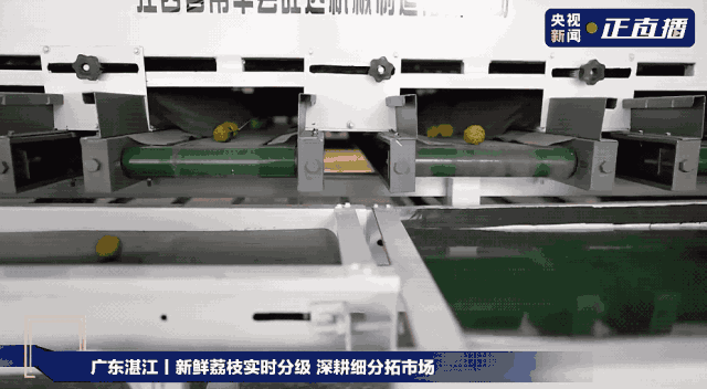 今年,“田頭小站”新升級了全自動流水線。荔枝被倒入分揀機(jī),機(jī)器對其進(jìn)行自動清洗、預(yù)選、風(fēng)干、分流等步驟,最后按照果實的大小進(jìn)行分類包裝,變成一箱箱成品荔枝就可以放入冷庫進(jìn)行冷藏。