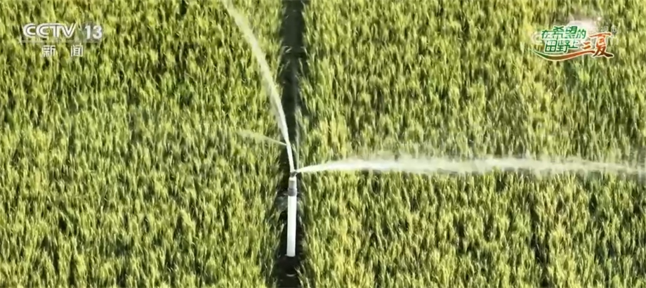 央視網(wǎng)消息:眼下,河南省永城市的小麥長(zhǎng)勢(shì)喜人,在永城市苗橋鎮(zhèn)的3200畝高標(biāo)準(zhǔn)農(nóng)田里,農(nóng)戶們正在對(duì)小麥進(jìn)行水肥一體化智能灌溉。一排排水管整齊排列在田地里,噴出的水珠細(xì)密均勻地灑在小麥上面。這樣不僅能將水和肥料直接作用于作物根部,還比常規(guī)灌溉節(jié)省了30%—50%的水量,通過(guò)嚴(yán)格控制土壤水分,使得土壤濕度始終保持在作物生長(zhǎng)的適宜范圍,提高了水肥的有效利用率。