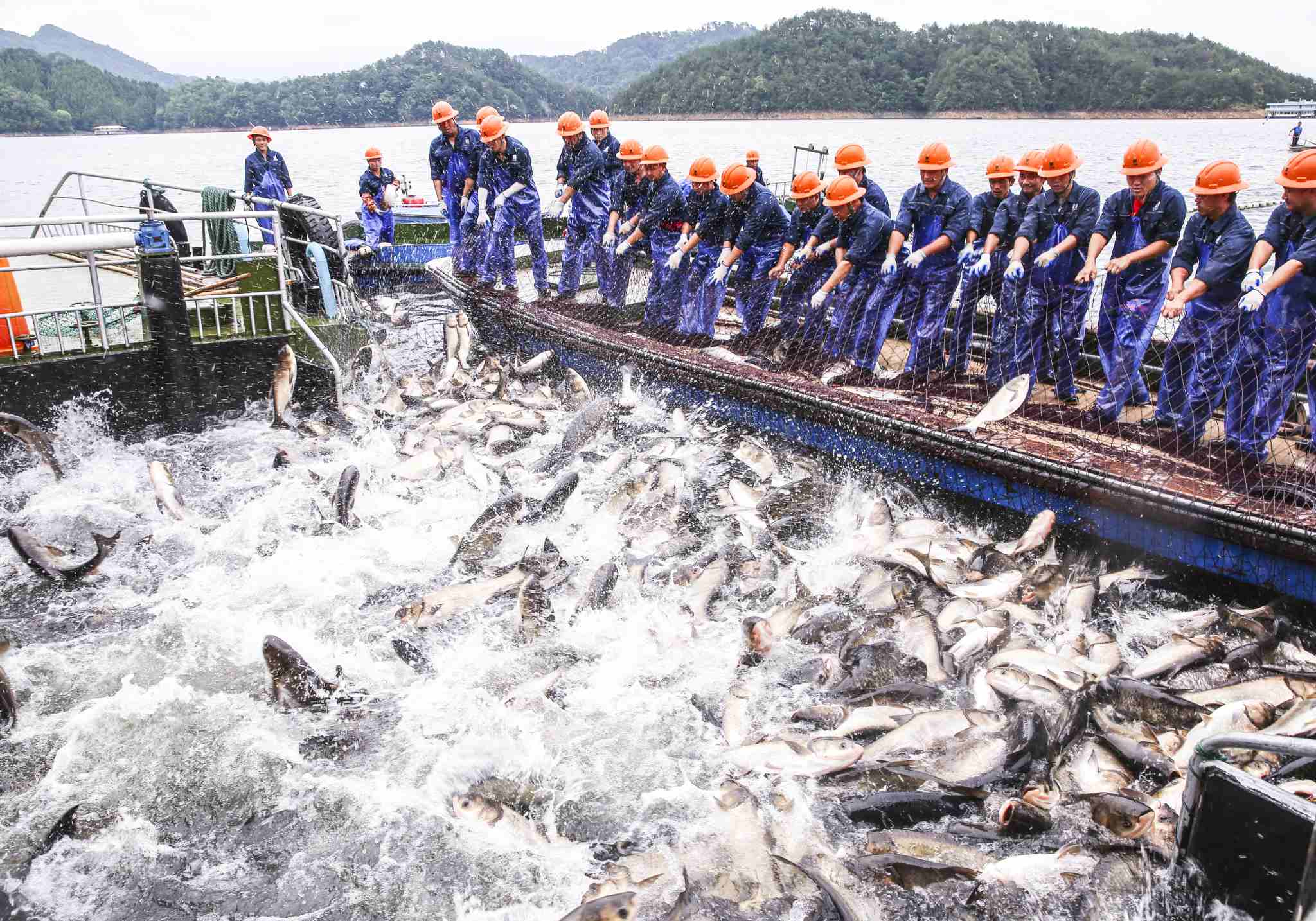 杭州:千島湖再現(xiàn)“巨網(wǎng)捕魚”景象