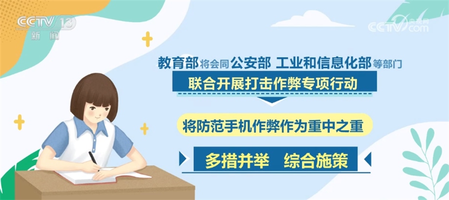 同時(shí),會(huì)同公安部、工業(yè)和信息化部等部門聯(lián)合開(kāi)展打擊作弊專項(xiàng)行動(dòng),將防范手機(jī)作弊作為重中之重,多措并舉、綜合施策,指導(dǎo)各地強(qiáng)化人防、物防、技防等措施,嚴(yán)格入場(chǎng)安檢規(guī)范,強(qiáng)化考場(chǎng)監(jiān)考巡考,嚴(yán)厲打擊利用手機(jī)等通信設(shè)備作弊行為。對(duì)于在高考中存在作弊行為的考生和人員,將依法依規(guī)嚴(yán)肅處理,堅(jiān)決維護(hù)高考的公平公正。