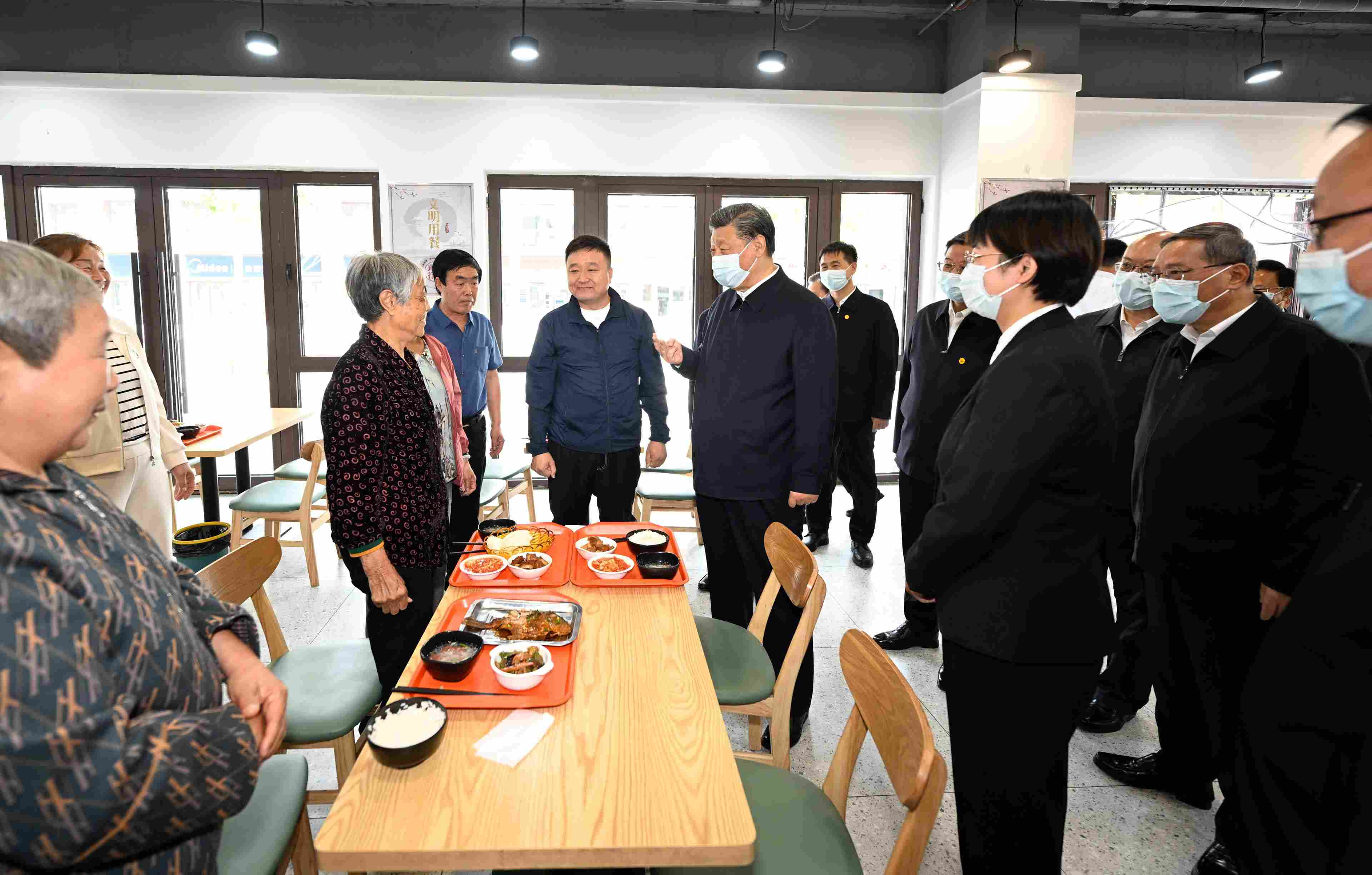 △5月10日,習(xí)近平總書(shū)記在河北省雄安新區(qū)考察,并主持召開(kāi)高標(biāo)準(zhǔn)高質(zhì)量推進(jìn)雄安新區(qū)建設(shè)座談會(huì)。這是10日上午,習(xí)近平在容東片區(qū)南文營(yíng)社區(qū)食堂同就餐的社區(qū)老人親切交流。